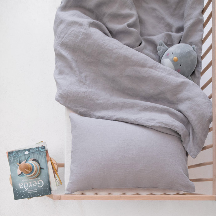 Linen Duvet Cover Set for Kids – Light Grey