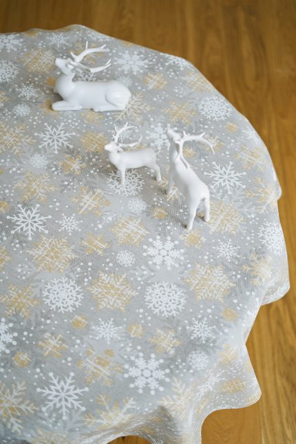 Wrap your holiday dinner party in an extra dash of sparkle with our Winter motive Round Tablecloth with snowflake print!