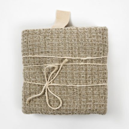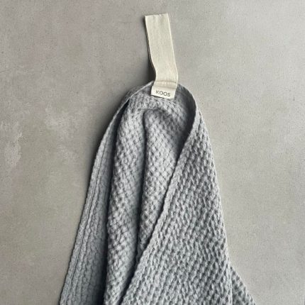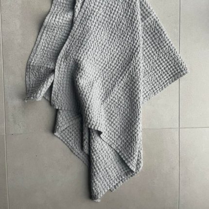 A large gray sauna towel made of pleasantly soft waffle fabric. The towel is made of 53% linen, 47% cotton