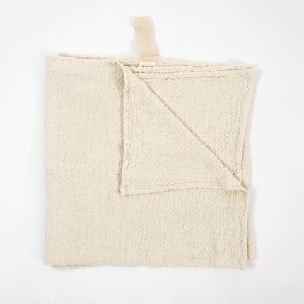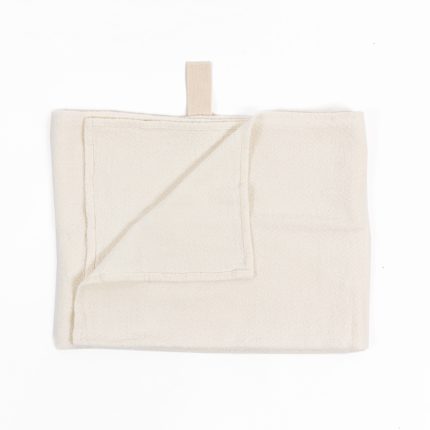 The towel is made of prewashed 100% linen fabric. The color is white with a fishbone pattern. It is easy