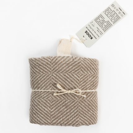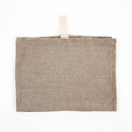 The towel is made of natural 100% linen fabric. The color is brown with a checkered fishbone pattern. Material is