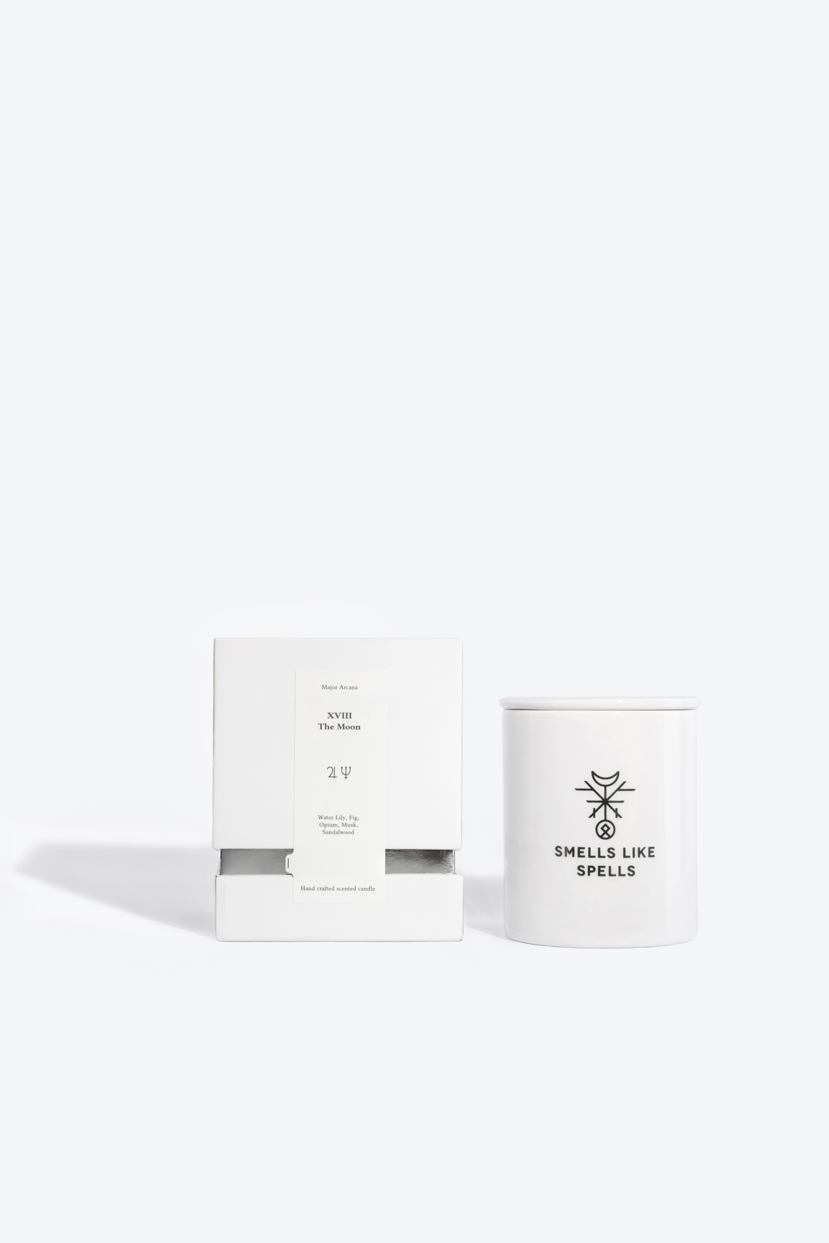 Included with this candle you will find one of the 22 Major Arcana cards, which, in combination with The Moon, may suggest how and at what level the archetype of The Moon manifests itself in your life. Suggested affirmations and the magical water lily, fig, white musk, opium, sandalwood fragrance may help you to release your deeply hidden essence.